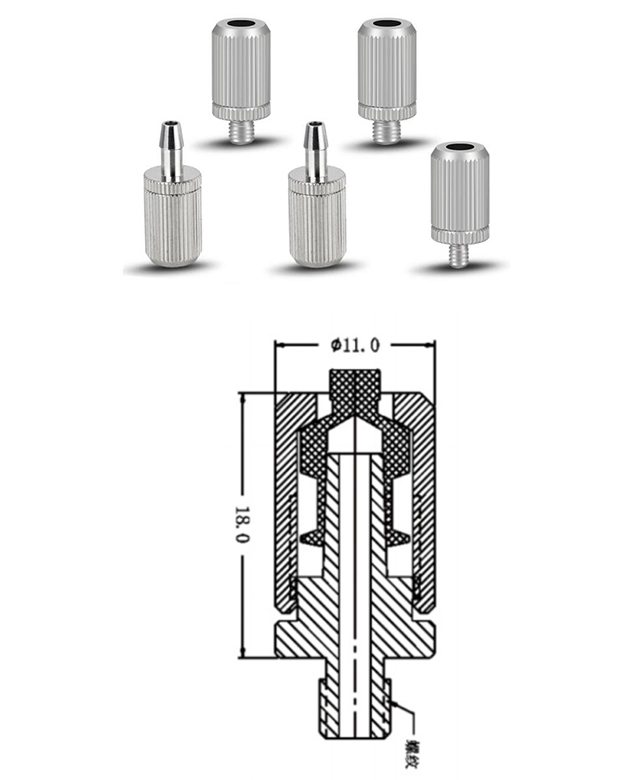 La rosca externa se conecta a cualquier aguja, como por ejemplo a una jeringa estándar de 1/4 de vuelta o a una jeringa estándar de 1/8 de vuelta, lo que facilita la conexión de la jeringa y la aguja.