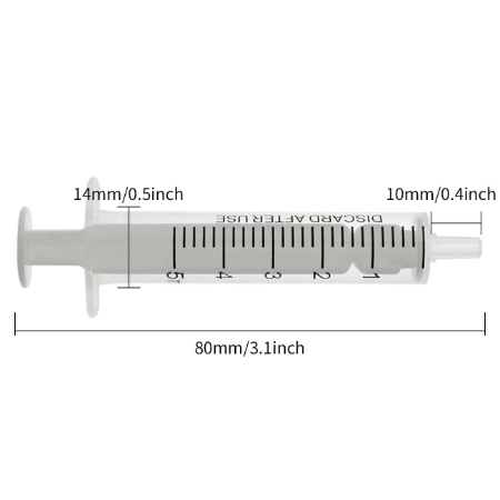 Jeringa de alimentación de colores de 5 ml y 10 ml, estéril, envasada individualmente para uso veterinario y de mascotas.