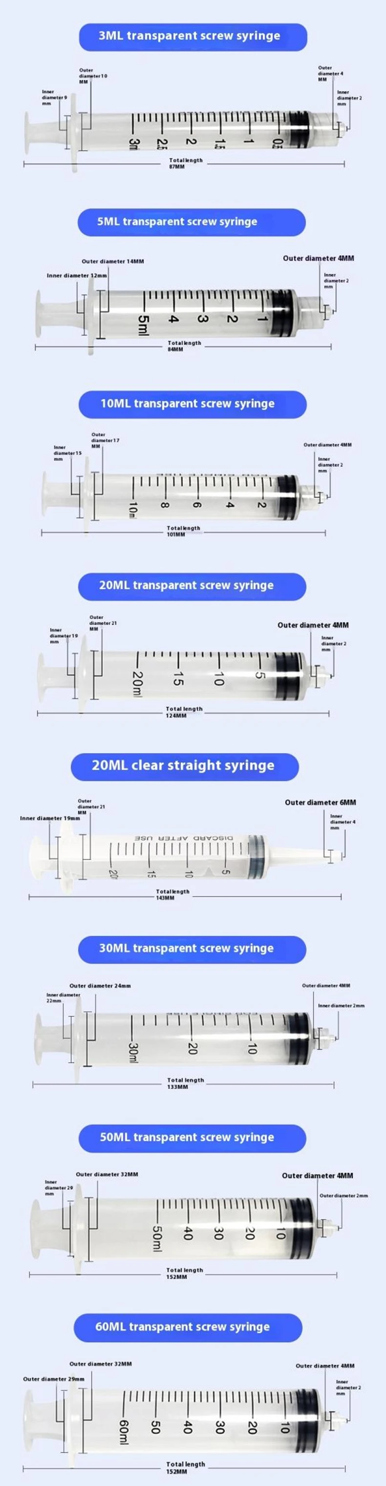 1 jeringa desechable de plástico Luer Slip de 60 ml, estéril, envasada individualmente
