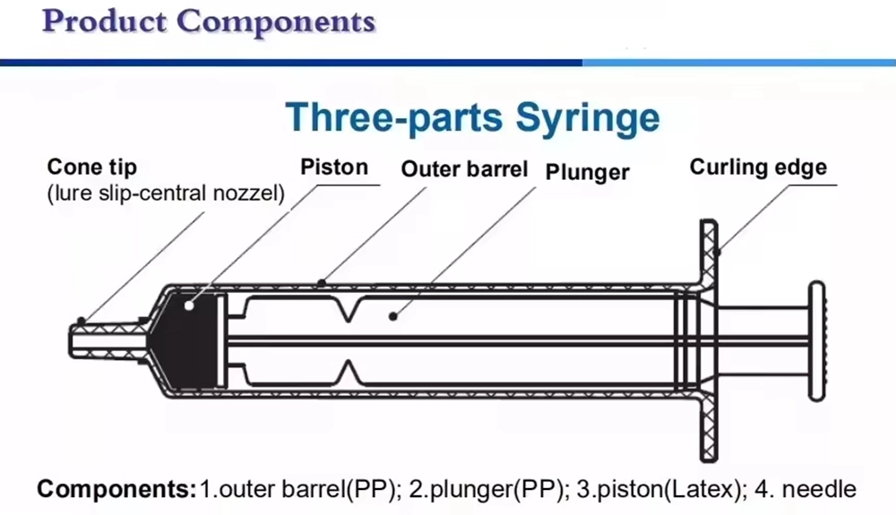 Jeringa Luer Lock de 1 ml a 60 ml con aguja opcional. Estéril, envasada individualmente.