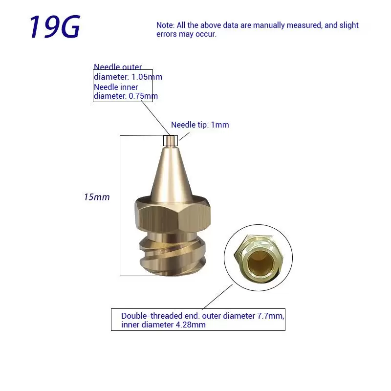 El extremo frontal del tubo de la aguja está rectificado en forma cónica para lograr la microdispensación.